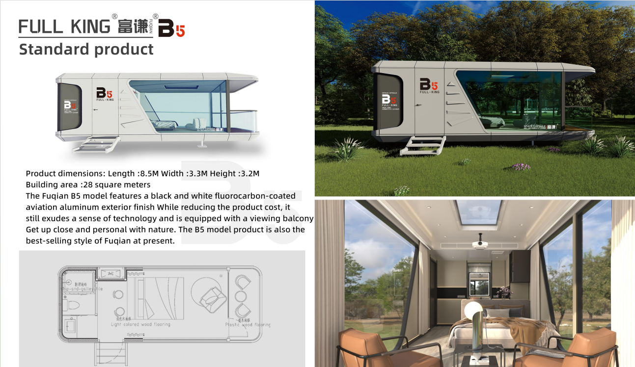 Fuqian Metal, headquartered in Linqu County, Weifang City, Shandong Province, has been focusing on diversified prefabricated buildings such as integrated houses, space capsules, and apple warehouses since its establishment in 2016. The company has its own factory, covering an area of about 15,000 square meters, with a production capacity of more than 200 sets per month. With excellent product quality and innovative design solutions, Fugian Metal's products have been exported to many countries such as South Korea, Canada, New Zealand, and Australia, and have provided personalized customization services to more than 50 camps and scenic spots at home and abroad, winning wide international recognition. As a brand dedicated to intelligent prefabricated buildings, Fugian Metal continues to increase its R&D investment and continuously optimize its product line to meet the diversified market needs of cultural and tourism real estate, core scenic spots, commercial supporting facilities, RV camps, etc. In the future, Fugian Metal will continue to adhere to the rigorous, stable, rational, and official business philosophy, continuously improve its comprehensive competitiveness, and provide global customers with better products and services.